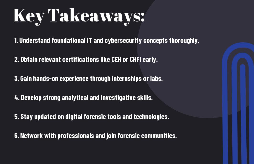 So, as you commence on your journey to build a career in digital forensics, focus on acquiring necessary skills and certifications, while networking with industry professionals. Your understanding of legal standards and technical expertise will be vital for success. Keep learning through courses and hands-on experiences, and don’t hesitate to seek mentorship. By following this roadmap, you will position yourself as a knowledgeable and capable candidate ready to tackle the challenges of the digital investigation landscape. Join us at Digital Forensic Squad to become a part of world renowned specialists.