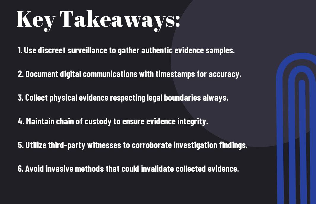 Many people overlook the legal framework surrounding evidence collection during relationship investigations. Understanding the laws governing evidence collection is vital for ensuring that your findings are admissible in court and do not violate anyone’s rights. This means being aware of what constitutes legal evidence while carefully navigating the legal landscape to protect yourself and your interests. For a deeper understanding of evidence collection, check out the comprehensive guide on Evidence Collection – StatPearls.
