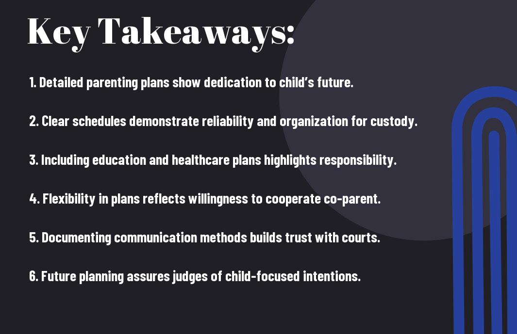 Unlike some may think, implementing effective future planning strategies can significantly strengthen your parenting plan in custody cases. By demonstrating a well-structured approach to your child’s future, you not only show your commitment but also provide the court with confidence that you are focused on your child’s long-term welfare.