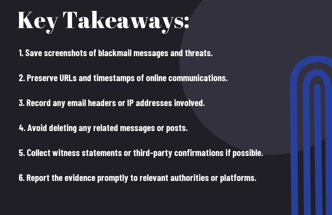 After facing online blackmail, it’s important to gather adequate evidence to support your case. Collecting specific types of information can enhance your report’s credibility. Here’s a breakdown of imperative pieces of evidence you should compile: